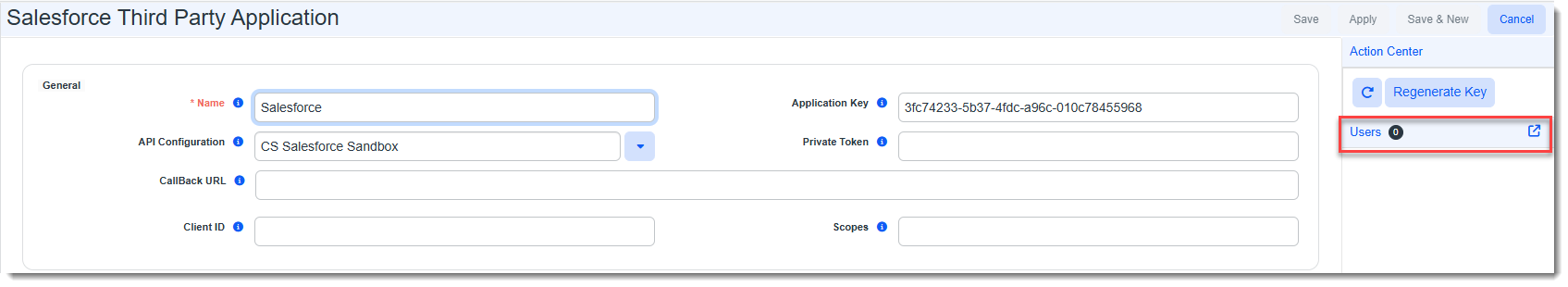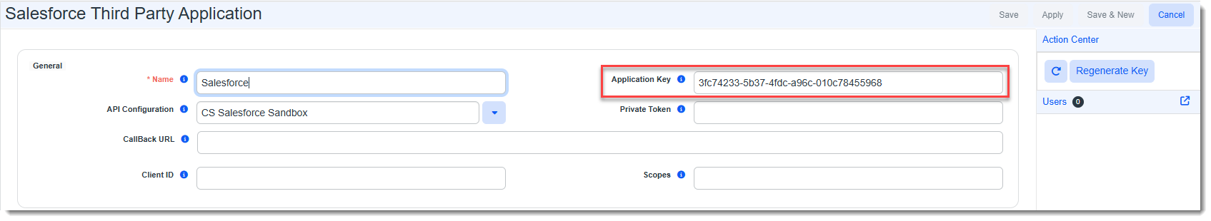 The Application Key is auto-generated. Now you are ready to add users to the configuration.