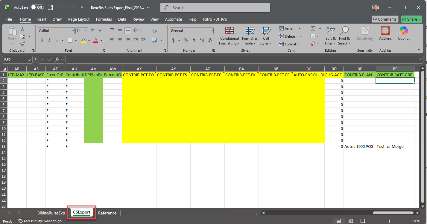 CSExport: Displays a breakout of contribution calculations being exported to PrismHR. Use this tab to verify calculations. Once you click Create Export File in the next step this tab is removed and does not export to PrismHR.