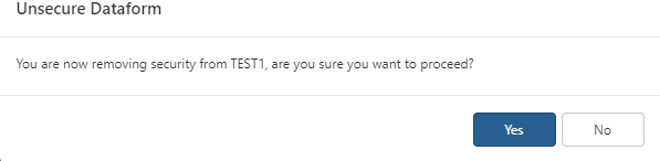 and click Yes in the Unsecure Dataform window to remove security for the dataform.