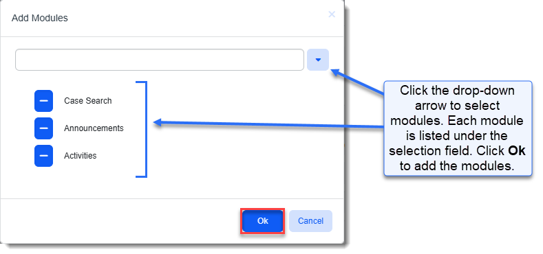 Created Multi-Select Process for Adding Modules to a User Profile The process for adding modules to user profiles has been updated. Previously, it was a drag and drop method. It is now a multi-select process whereby you select multiple modules and then add them to a user profile. |