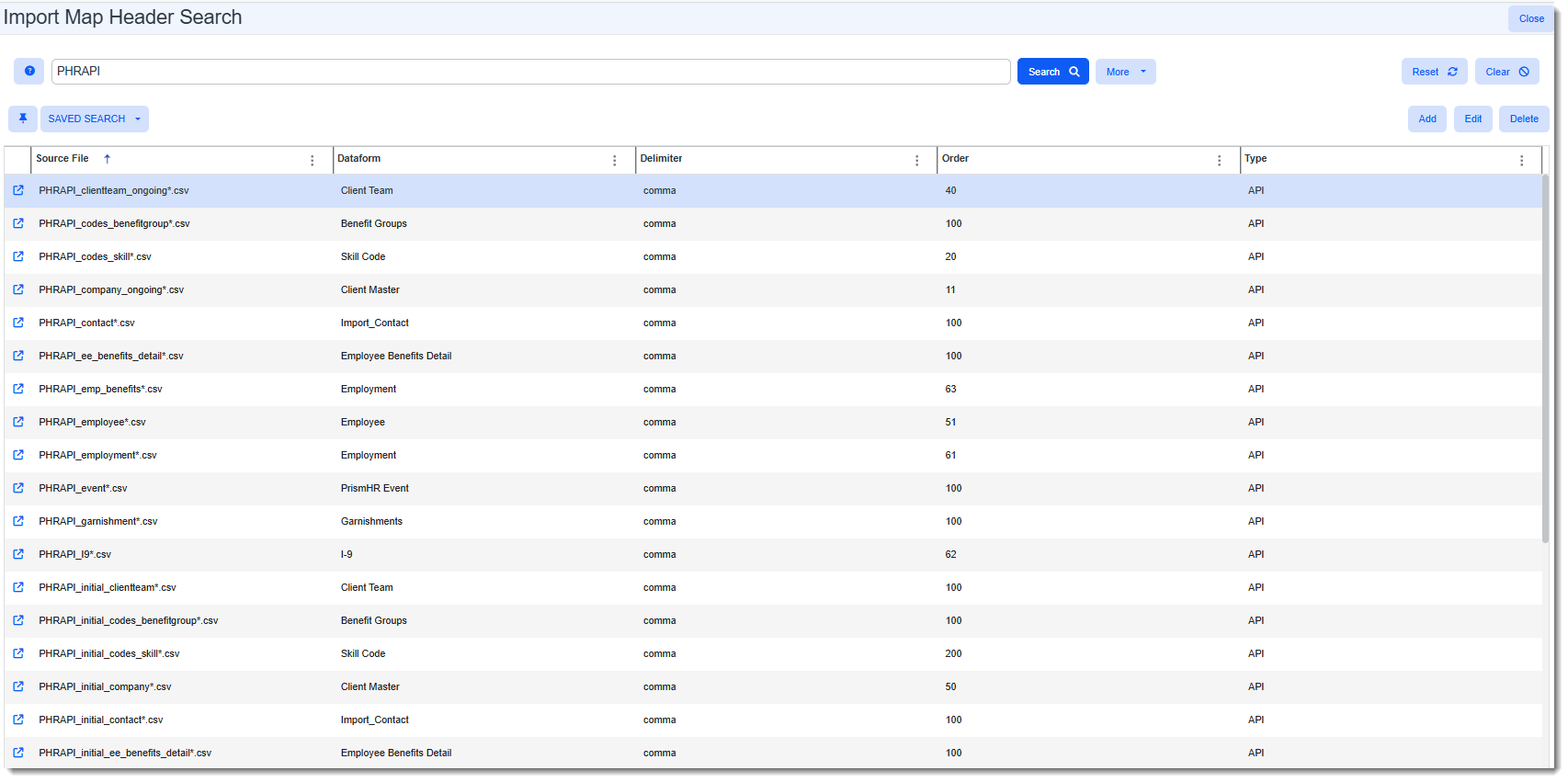 Updated PrismHR Import Map Headers to "PHR" instead of "HRP" PrismHR import map header source file names are now prefaced by "PHR" instead of "HRP" (System Admin This was done to make the import map headers more easily recognizable as PrismHR import configuration files and reduce the potential for the files being mistaken for HCM import map headers. Additionally, the Admin Workspace HRP Subscription tile was also renamed to PrismHR Subscription: Note: Numerous ClientSpace Help Center articles were updated to reflect these changes. The list below reflects the most affected articles, but is not an exhaustive list. See: |