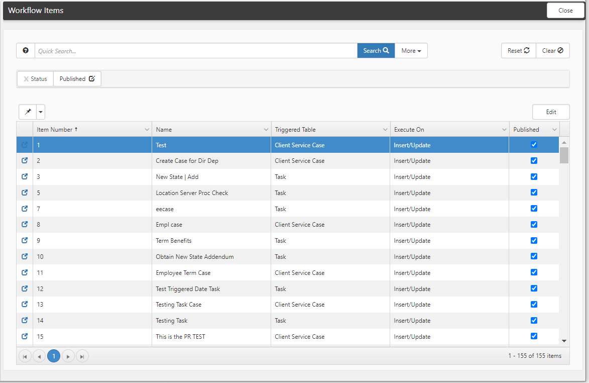 Place a check mark in the Publish checkbox to publish the workflow item or remove the check mark from the Publish checkbox to unpublish a workflow item.