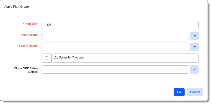 Plan Group Select Plan Group containing the plans you want to apply to the Benefits Batch.