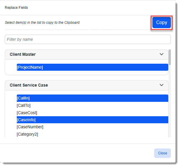 A message briefly displays that the fields have been copied to your clipboard.