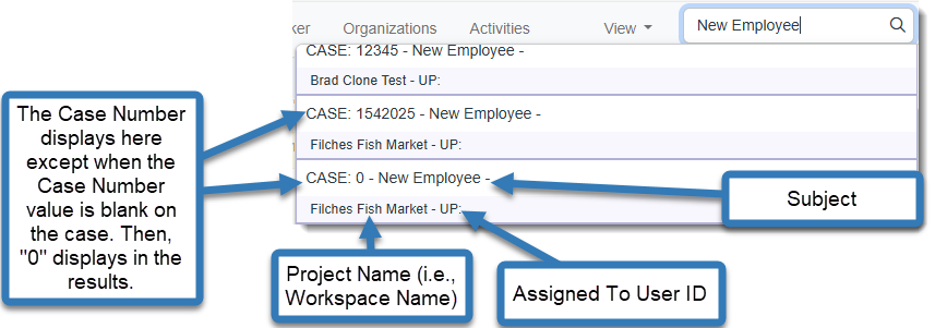 Note: If no Case Number was entered, 0 displays.