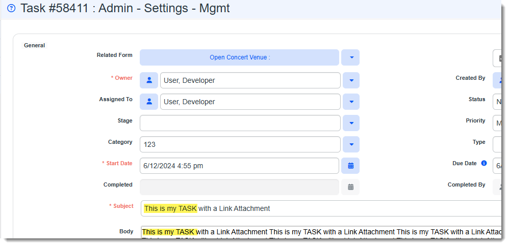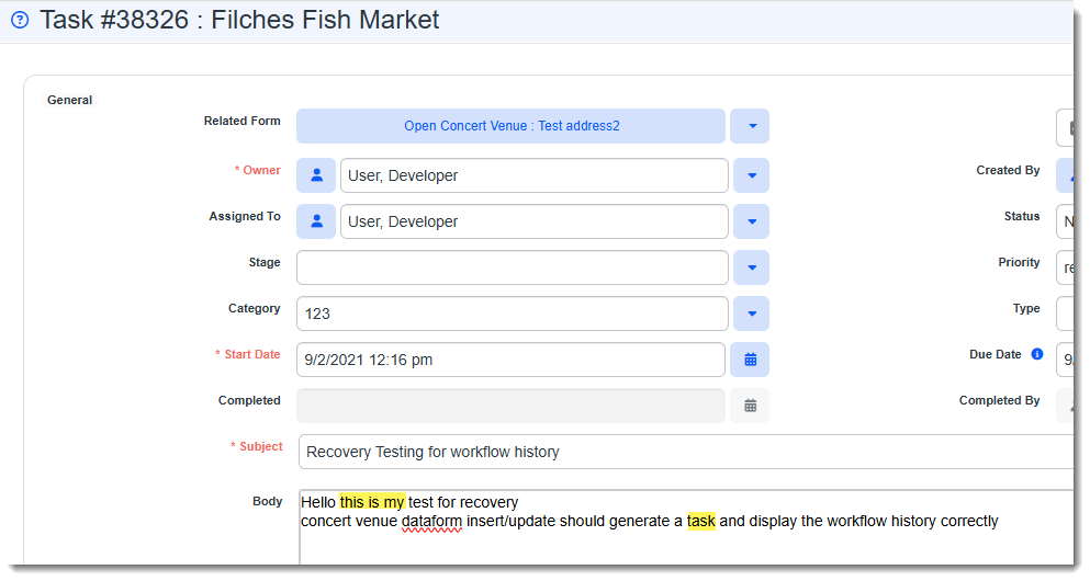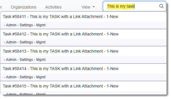 The results can contain the search string entered in any order. For example, searching for This is my task returned all records where the words This is my task were found within any of the dataform field values.