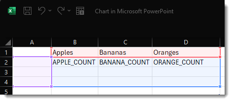 This data in the first column beginning with CHART_ should contain the Category names. This is used to populate the chart categories when you configure the field replacement in PowerPoint.