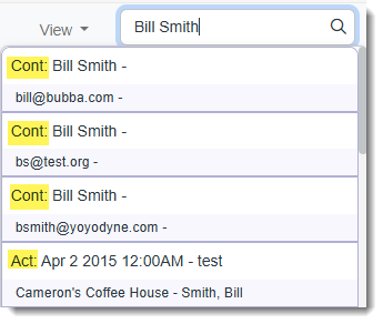 Global Search Results Now Include Prepended CRM Form Type Abbreviation Note: The Global Search feature is currently in a beta test period. To request this feature, please contact your ClientSpace representative or log an extranet case. A form type abbreviation is now being prepended to Global Search results for CORE (i.e., CRM) forms to help users identify results. The following values are prepended: